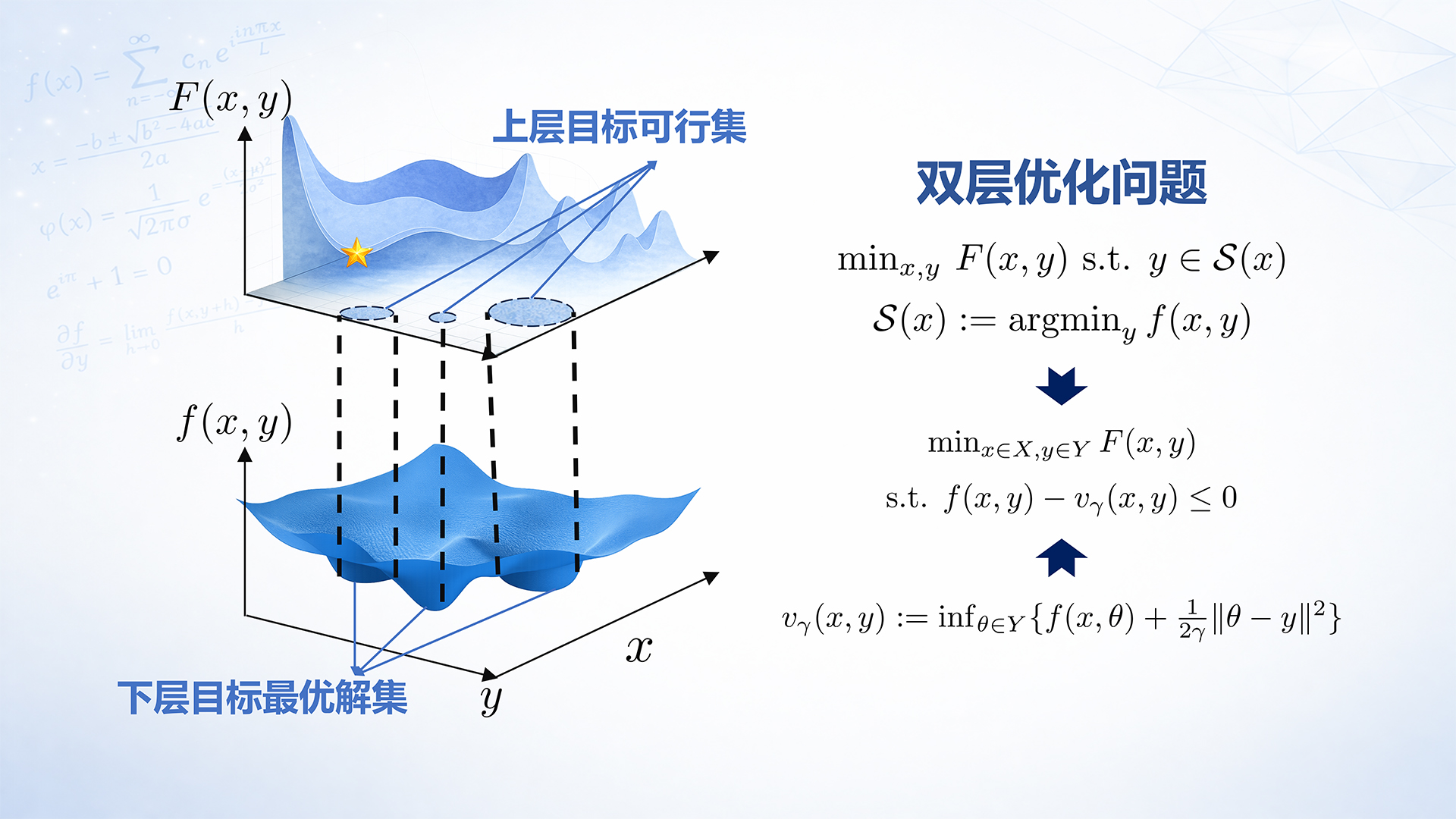 针对上述挑战,南科大数学优化研究团队提出了一种基于Moreau包络价值函数的再定式方法。通过在算法中引入与辅助变量相关的强凸子问题,成功将原本难以直接控制的下层近似误差转化为可计算且可验证的误差项,从而系统构建了一个面向下层非精确求解的全新算法设计与理论分析框架。该研究首次在理论上实现了对下层近似求解误差的量化描述与可控传递,为双层优化在大规模机器学习中的高效应用,特别是针对超参数学习问题的求解,提供了新的思路和方法支撑。